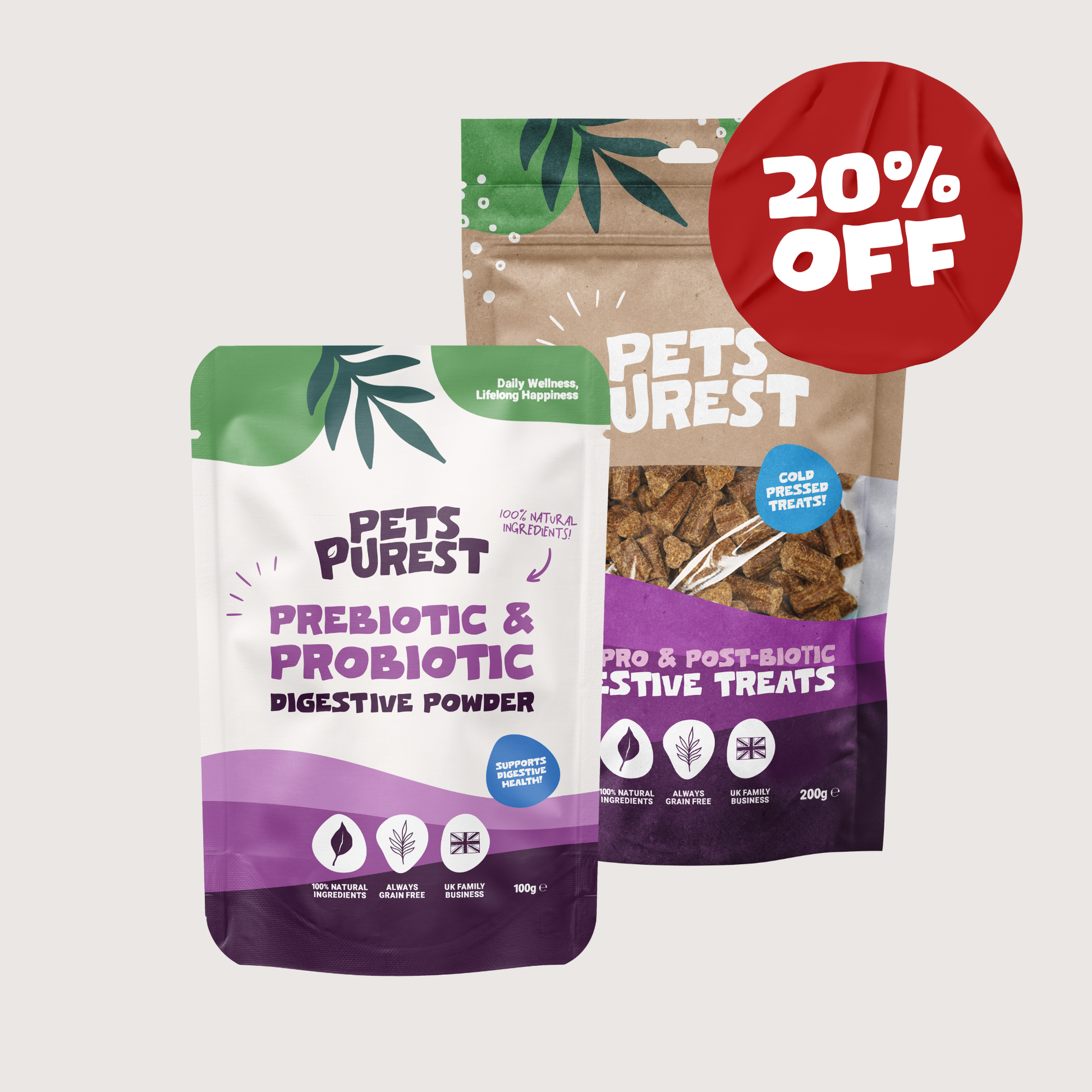 Support your dog’s digestive health with our Digestive Care Duo – Natural Pre & Probiotic Powder and Pre, Pro & Post-Biotic Treats work together to balance your pet's gut microbiome and promote overall wellness